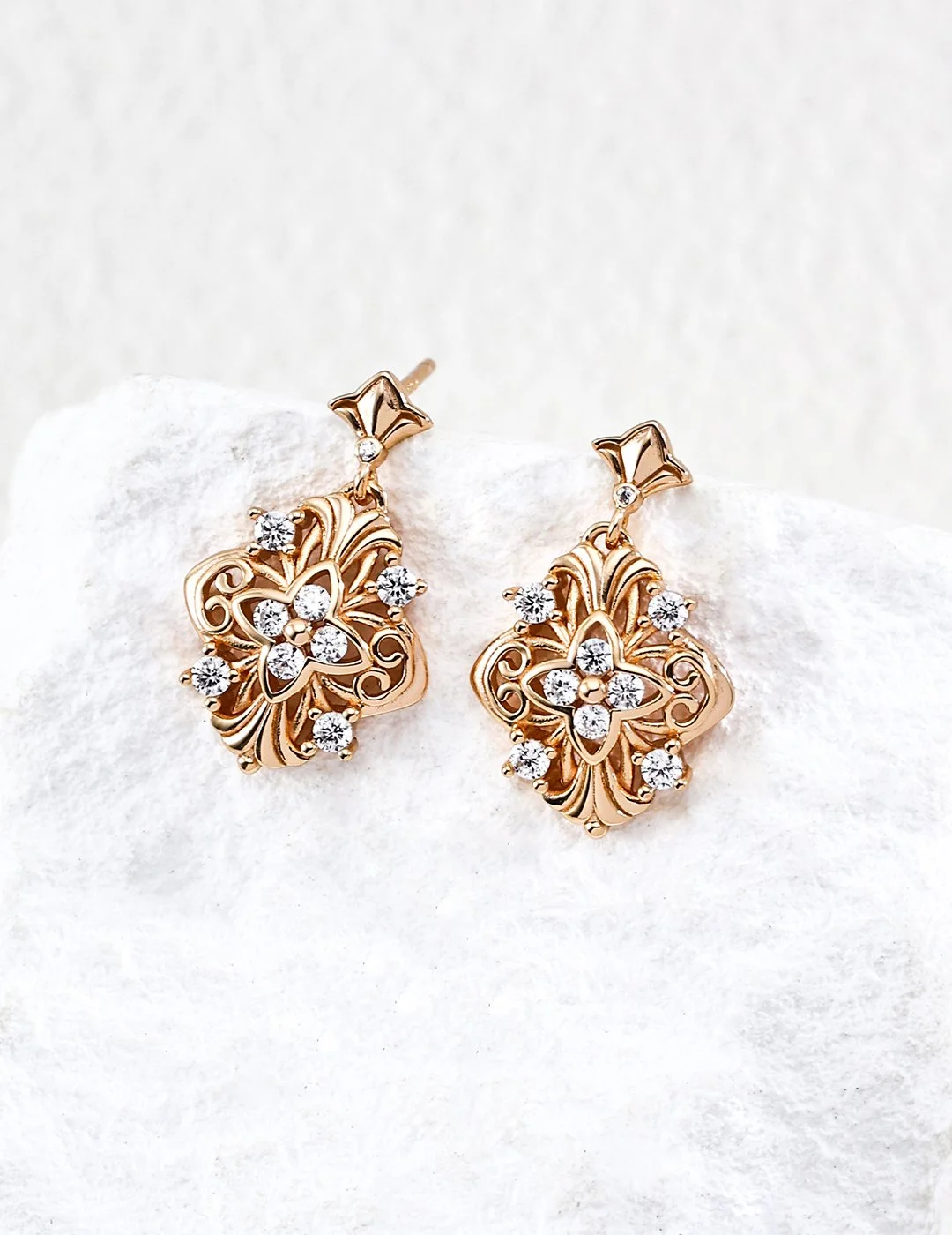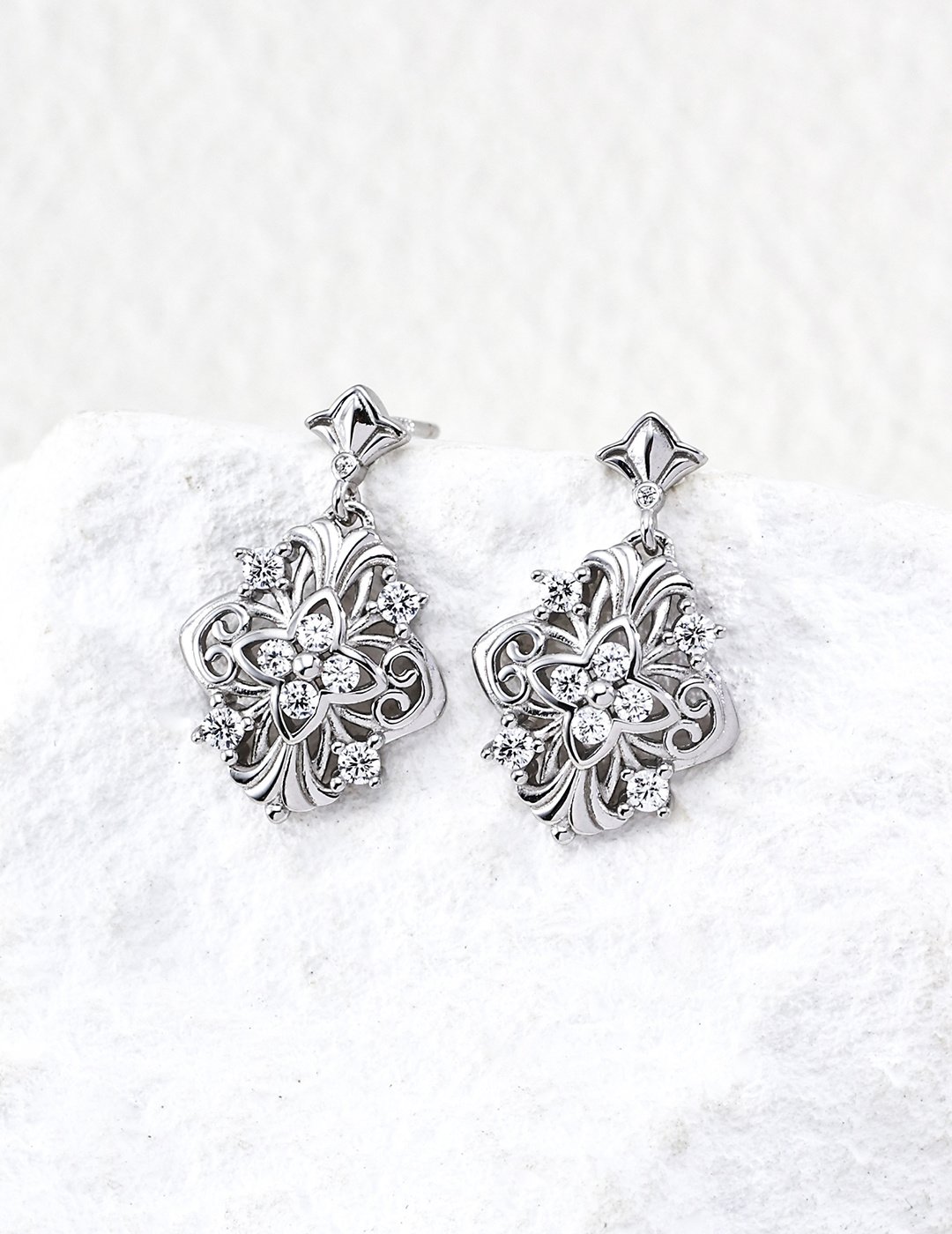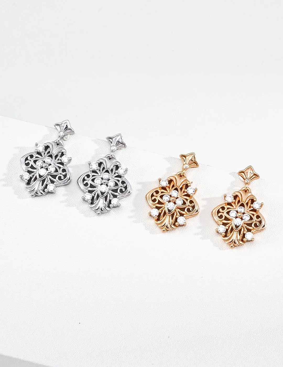 Zircon earrings. [Four-leaf Iris Joy] — The opulence of European court style, combining vintage carvings with dazzling zircons for an elegant and timeless look.