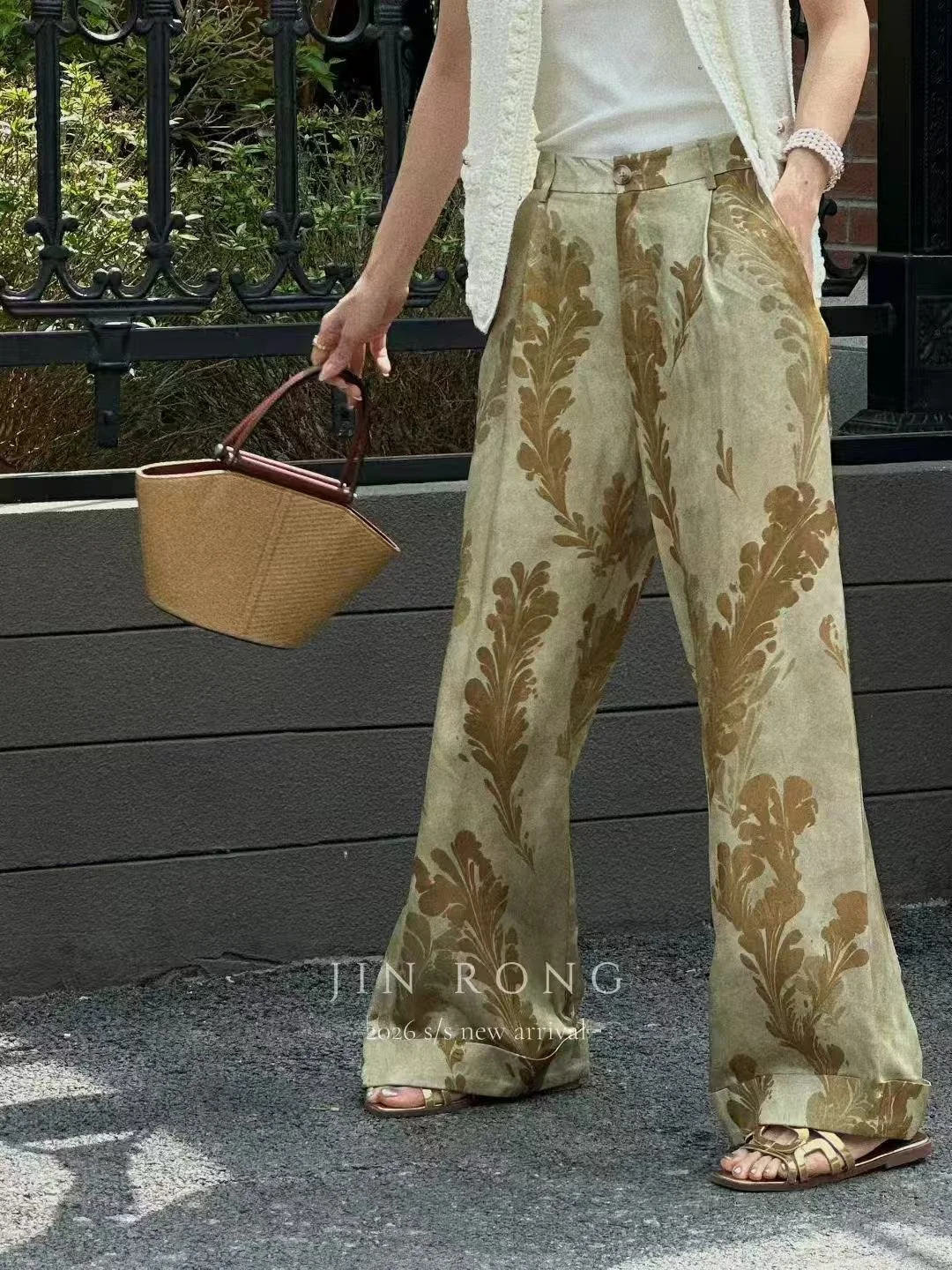 • The light khaki base, adorned with gilded botanical prints, exudes an oil-painting-like texture, exuding elegance and grandeur with every step.