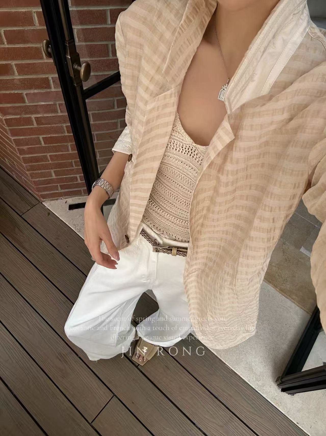 The whole set is clean and fresh, whether worn alone or layered, it easily unlocks the French relaxed commuting style, suitable for daily outings, office commutes or vacation scenes—an indispensable versatile texture set for your wardrobe.