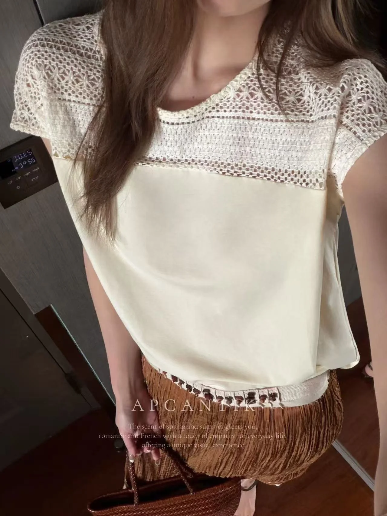 ✨ Wear French romance and relaxed vibe on you! This lace-inset satin top is an atmospheric essential for spring and summer styling.