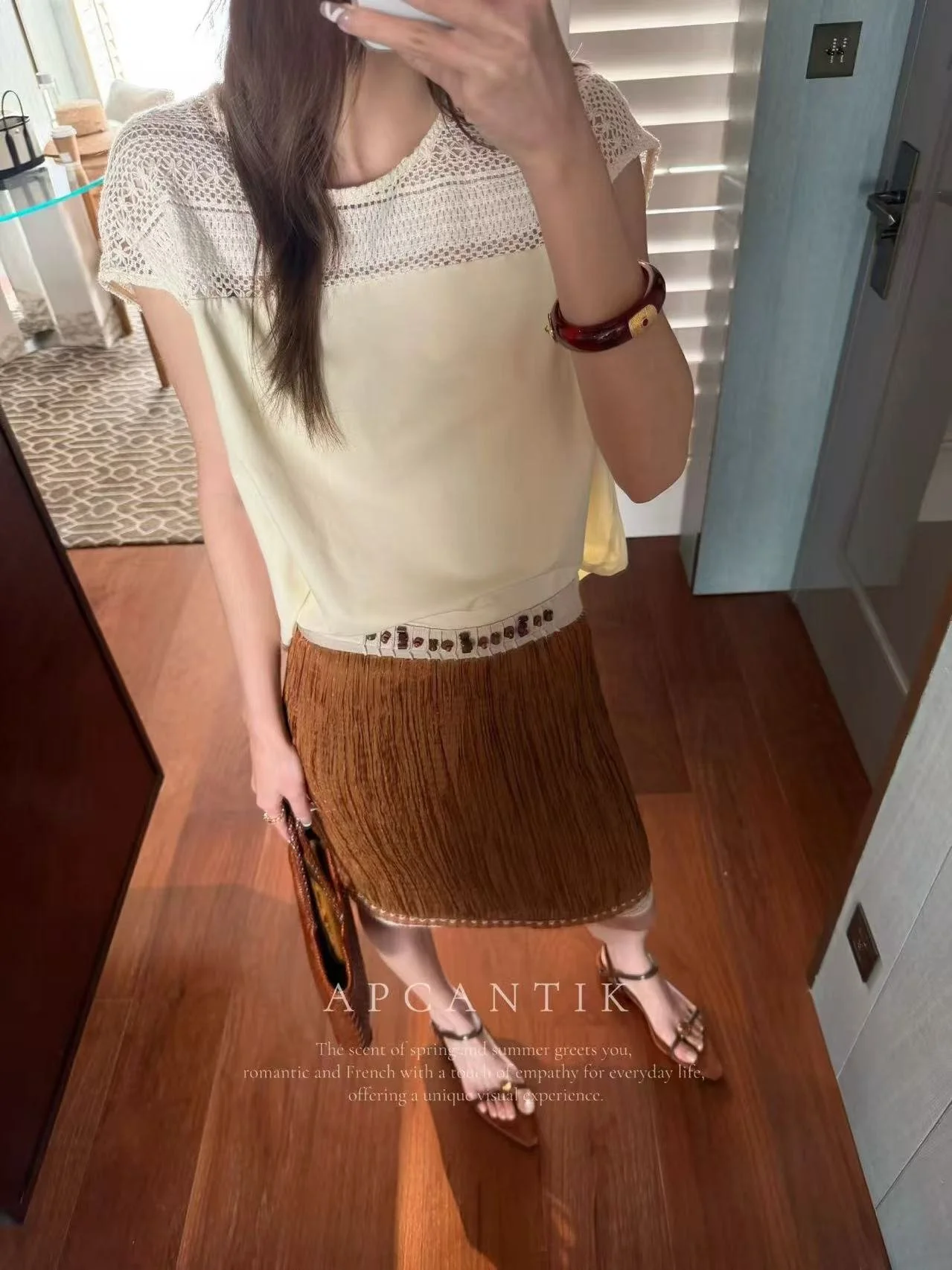 Worn alone with wide-leg pants and skirts, it’s casual and sophisticated; layered with blazers and knit cardigans, it’s gentle and relaxed for commuting. A versatile piece for daily outings and vacation trips, easily elevating the delicacy of your outfit.