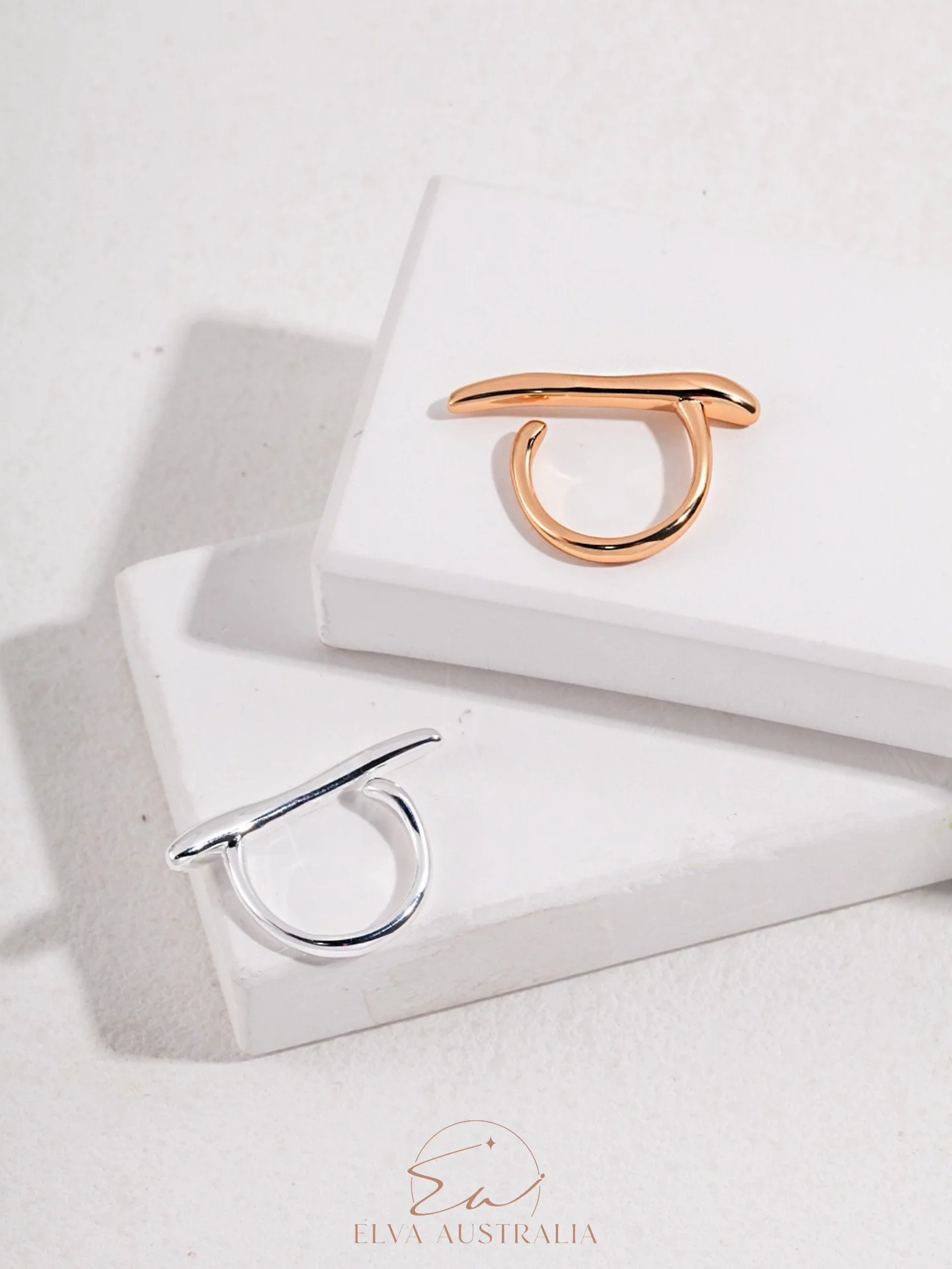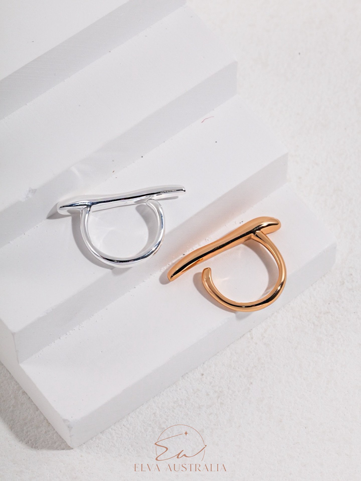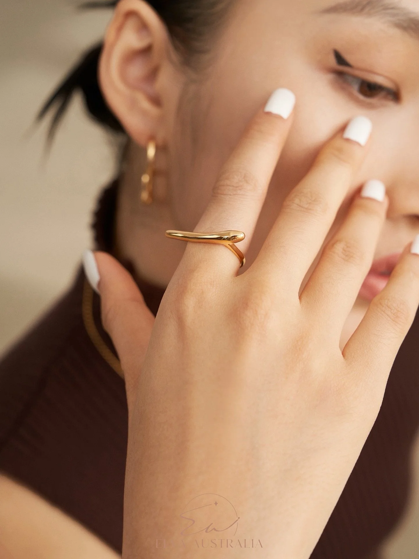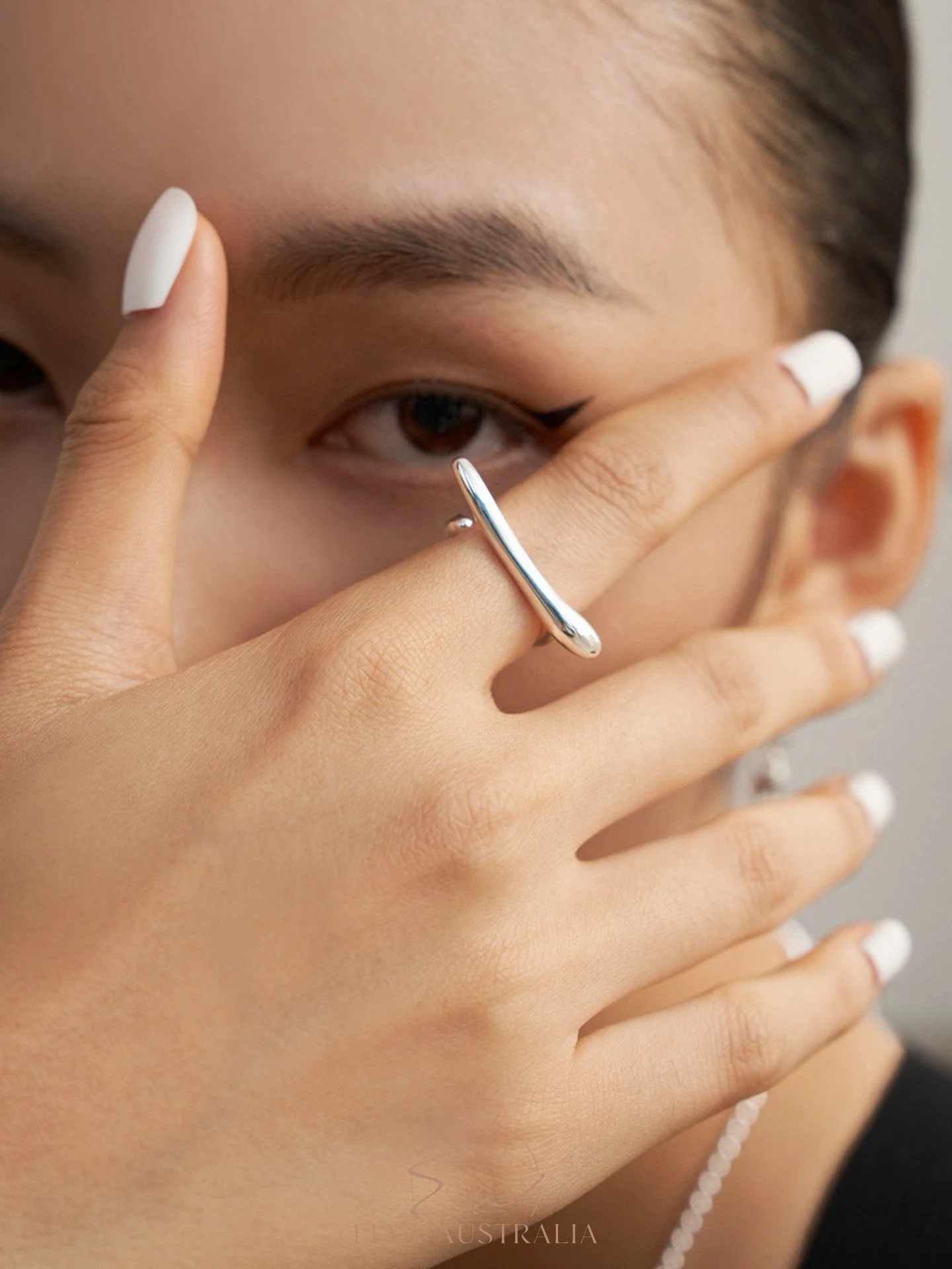 Inspired by fluid line art, this ring abandons complex designs, outlining the fingertip shape with a clever arc. Crafted from high-quality alloy with a polished finish, it boasts a delicate texture and long-lasting shine, ensuring comfortable wear without snags.