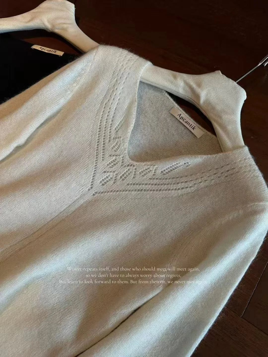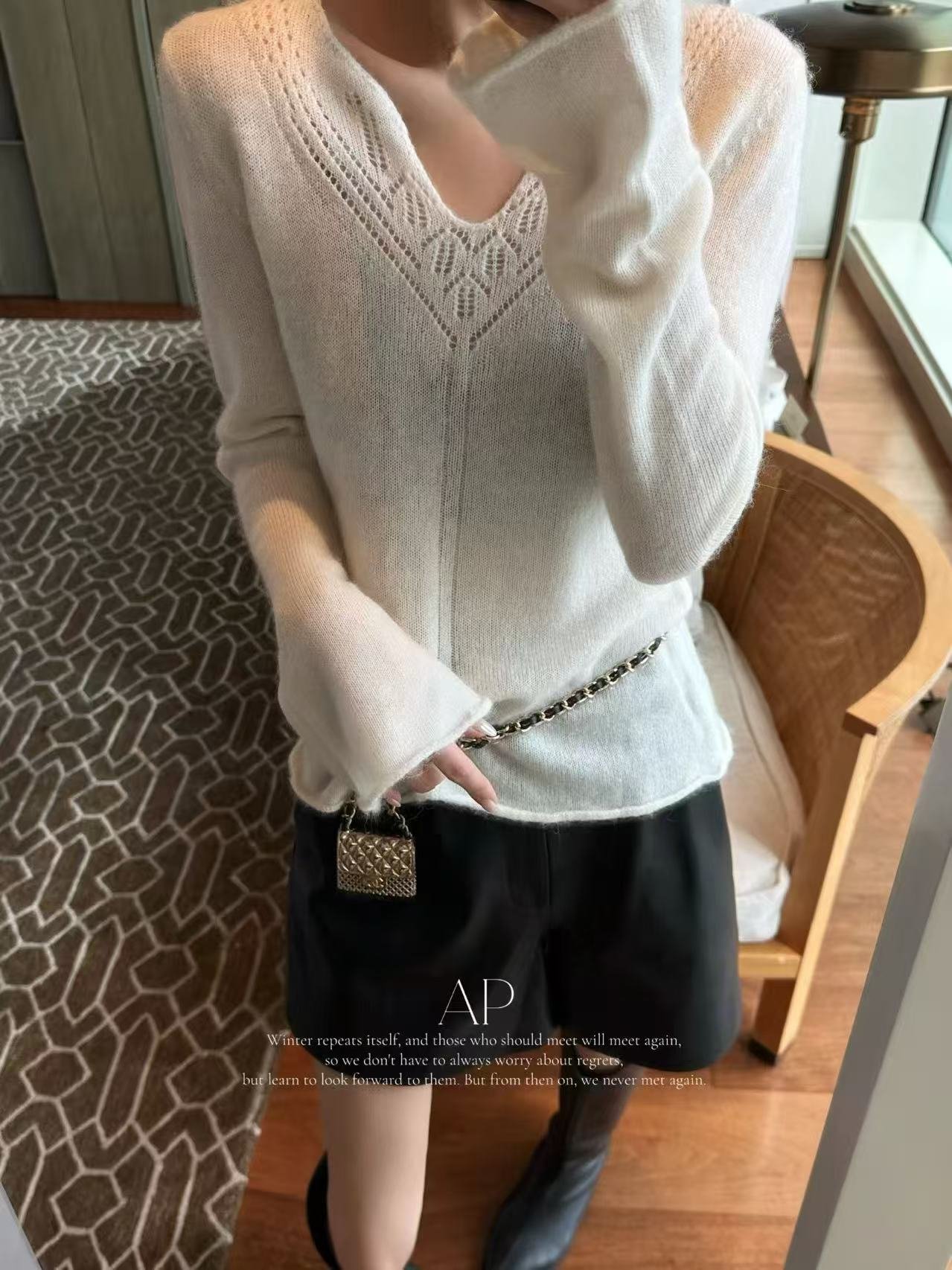 Image 1 of 5 Image 2 of 5 Image 3 of 5 Image 4 of 5 Image 5 of 5 V-neck openwork bottoming shirt $138.00 size: S-black M-black L-black S-white M-white L-white S-coffee color M-coffee color L-coffee color Quantity: Add To Cart Added!