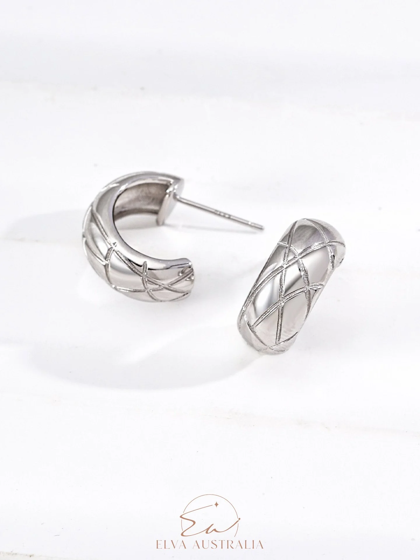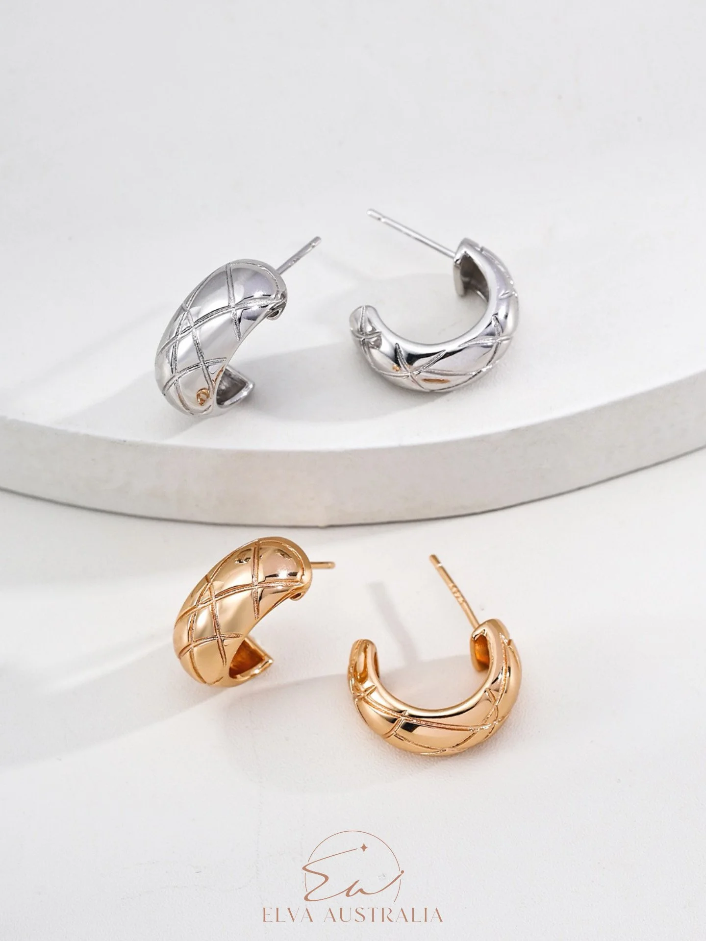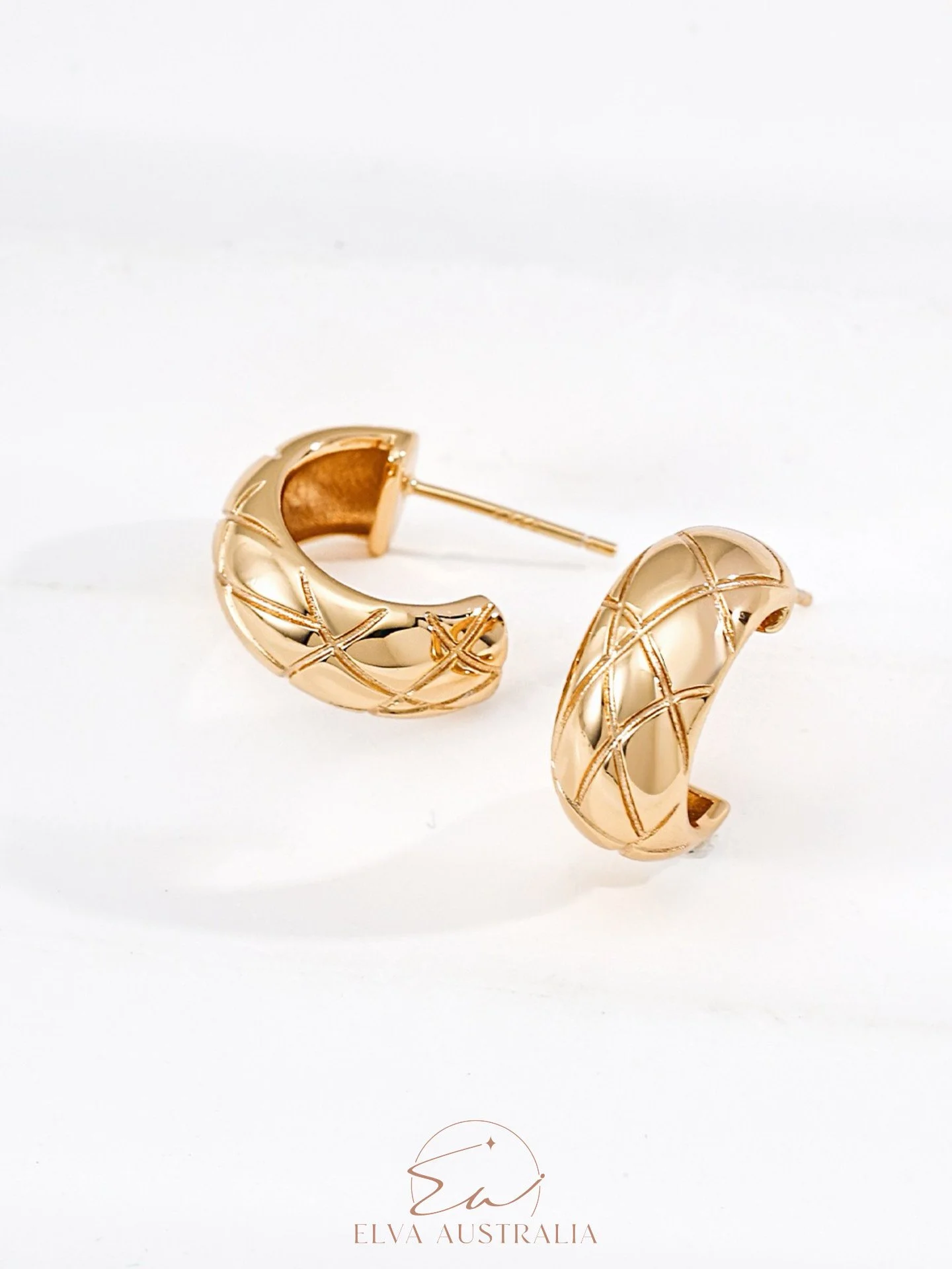 ✨ Wear luxury on your ears! This quilted C-hoop earring is the perfect finishing touch for any outfit.