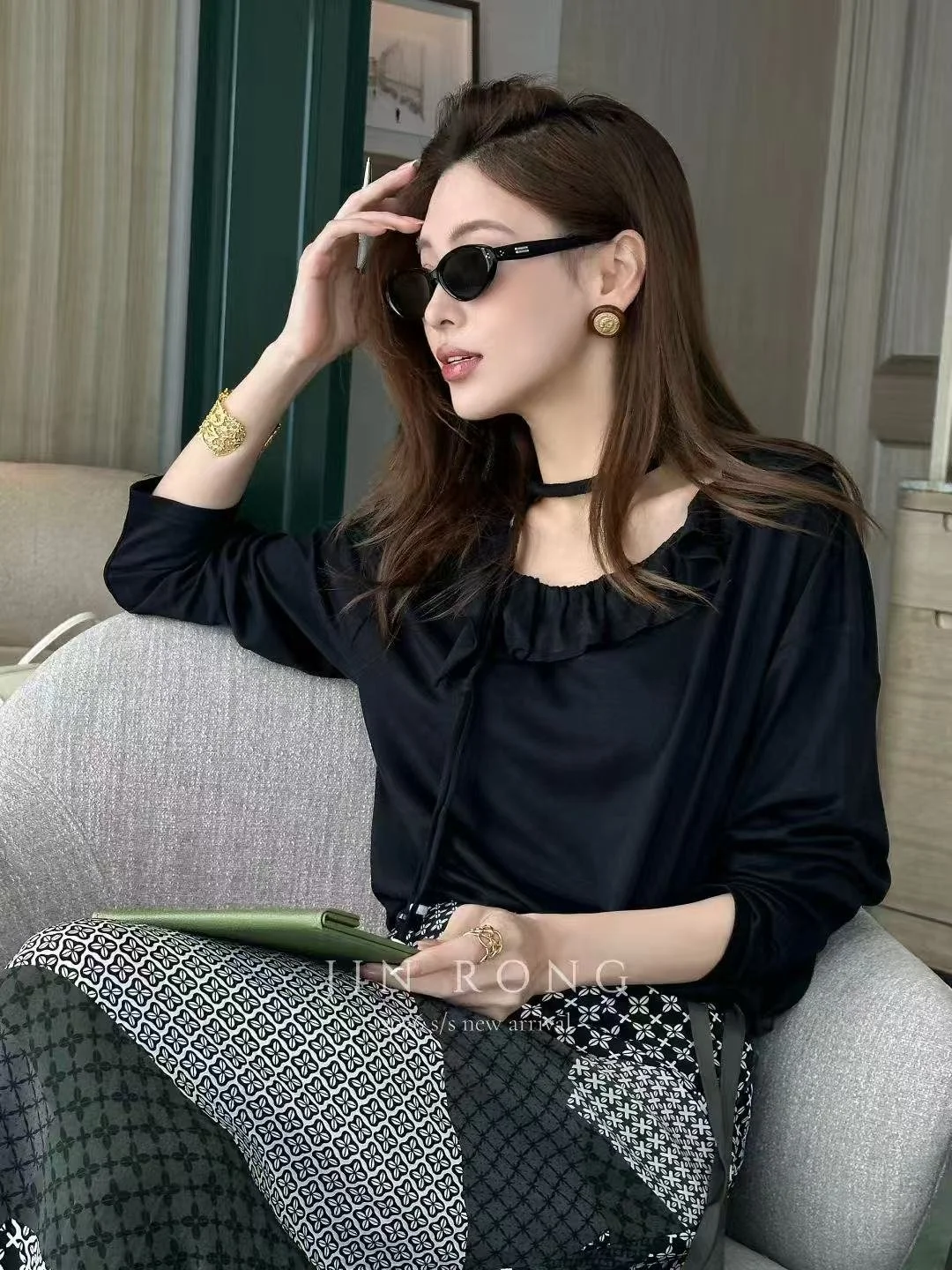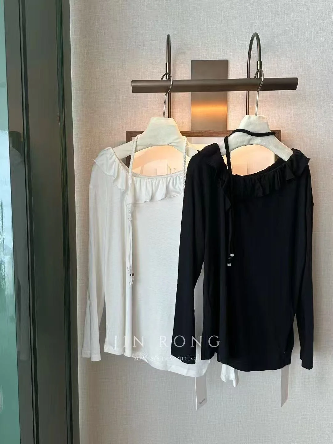 Launching our 2026 spring/summer collection ✨ This ruffled halter long-sleeve top is a must-have! The classic black-and-white color scheme suits everyone. Featuring asymmetric ruffled edges and a halter strap, it gently shapes shoulder and neck lines for a romantic vibe. Made from skin-friendly, breathable fabric, it’s soft and comfortable without feeling stuffy. The loose fit flatters all figures. Wear it alone or layered—it’s a versatile staple for your spring/summer wardrobe, effortlessly nailing French romantic styling!