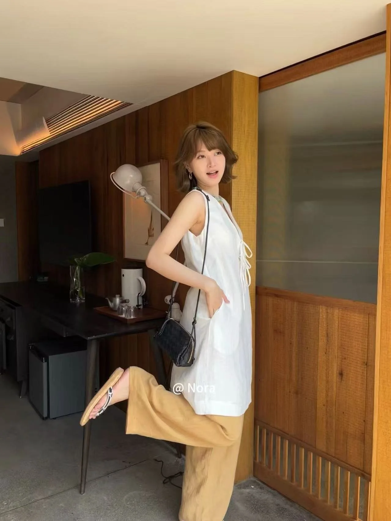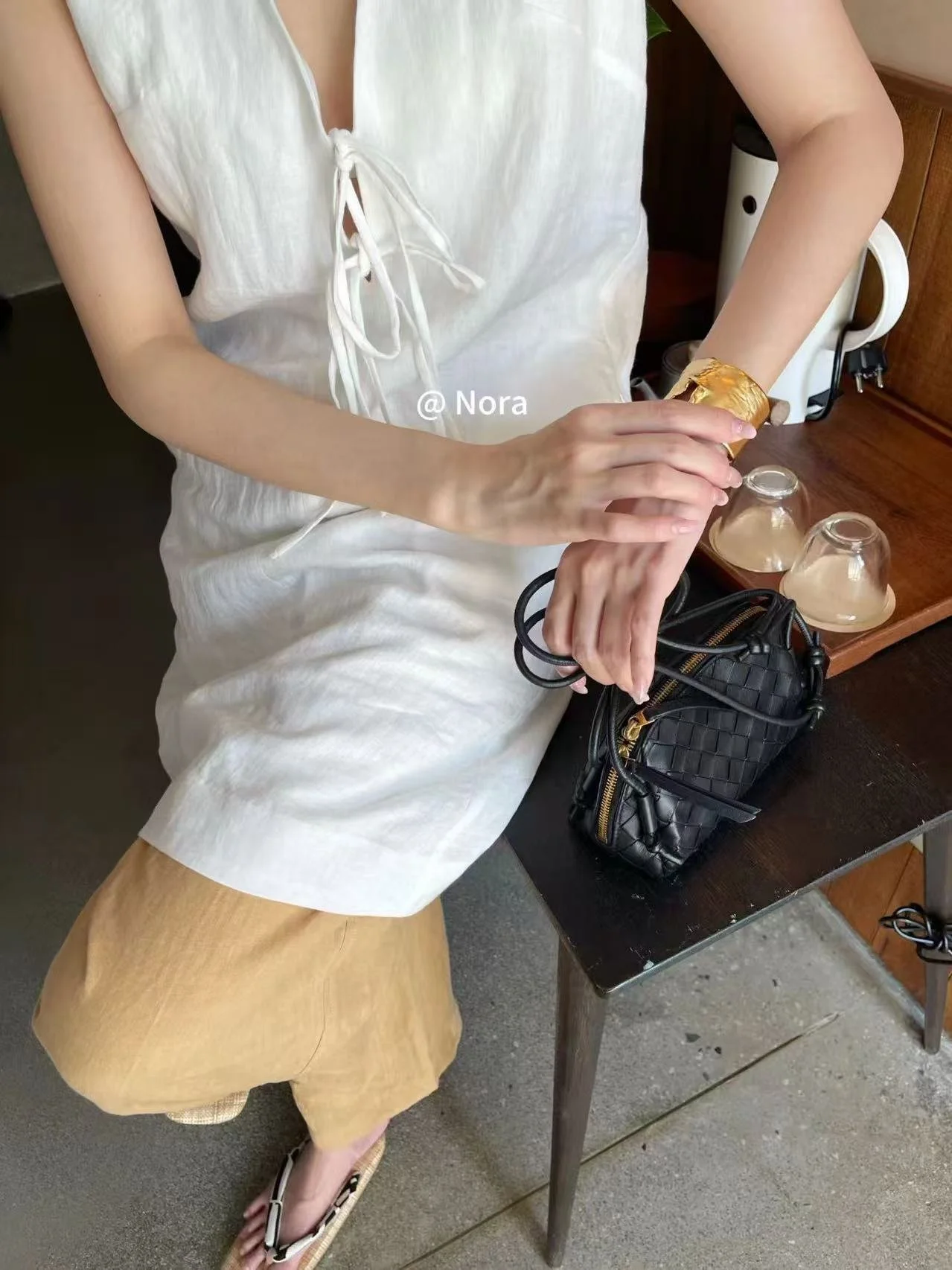 The deep V-neck + front drawstring tie allows you to adjust the neckline freely for a personalized vibe. The sleek sleeveless cut accentuates shoulder and neck lines, delivering an elegant and slimming look.