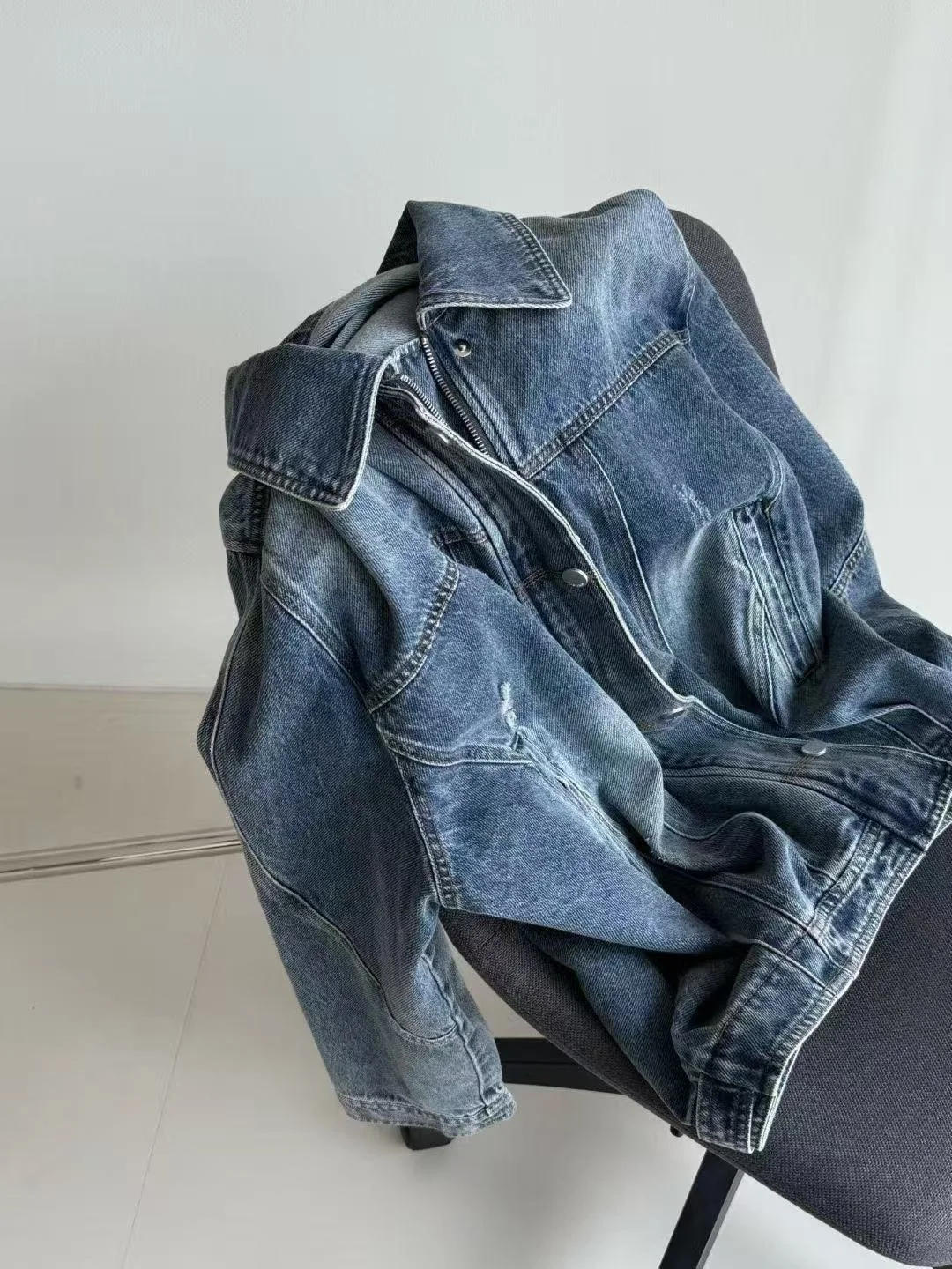 Classic vintage washed and worn craft for a casual texture. Oversized loose fit slims and fits all body types. Crisp denim fabric, versatile and stylish, perfect for daily casual and street wear.
