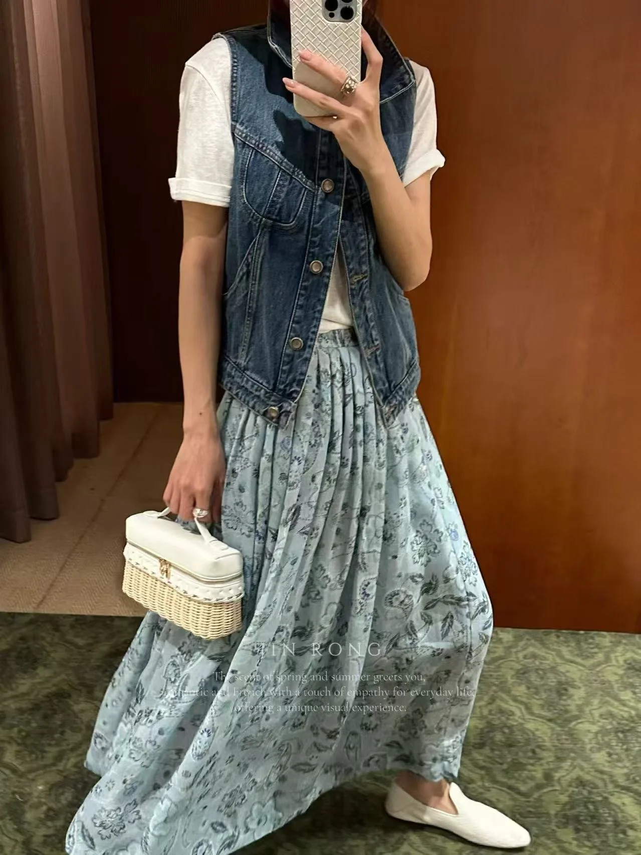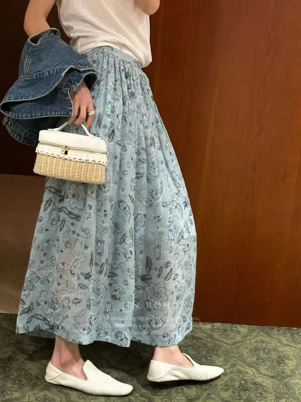 ✨ Wear the spring mist and blooms on you! This light blue paisley skirt exudes a relaxed French vibe.