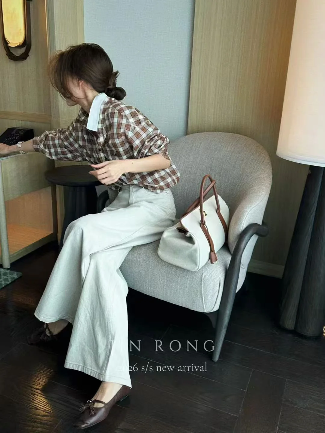 Featuring classic brown and white plaid pattern, it has a loose fit suitable for all body types. Made of soft and skin-friendly fabric, it is perfect for daily commuting and casual wear. Versatile and good-looking, it easily creates a lazy and stylish atmosphere